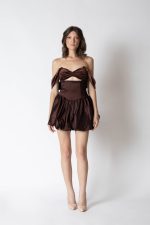 Satin Tie-Front Bell Sleeve Crop Top – Beige