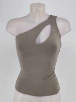 One-Shoulder Cutout Top – Brown