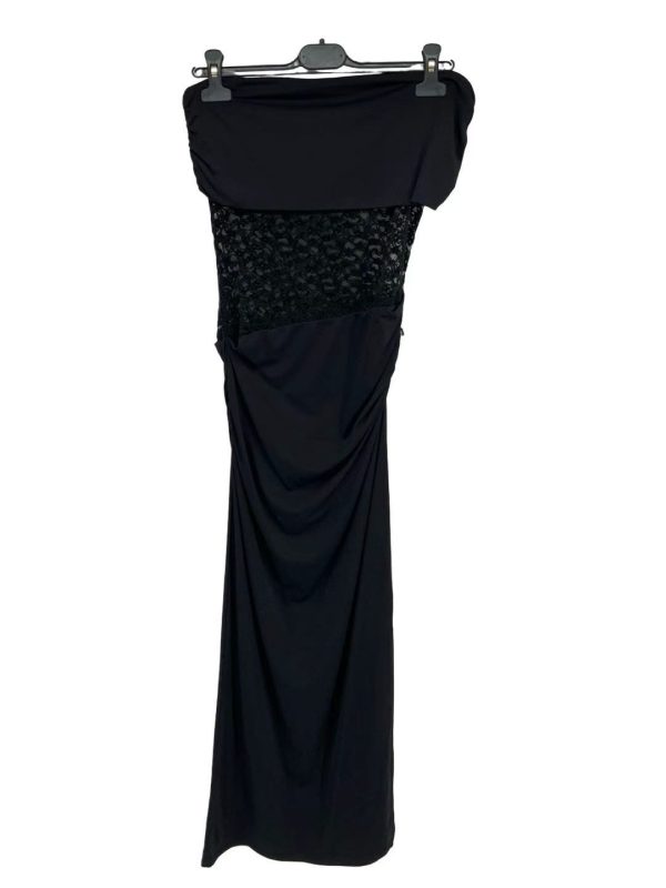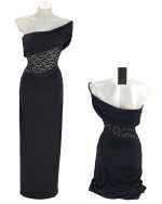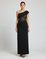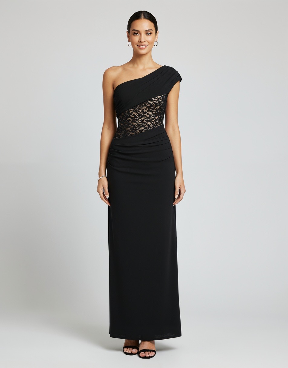 One-Shoulder Maxi Dress with Lace Waist Detail – Black