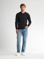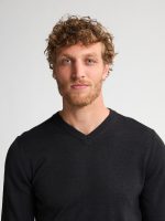 Petrol Fine-knit V-neck Sweater Whitefish – Black