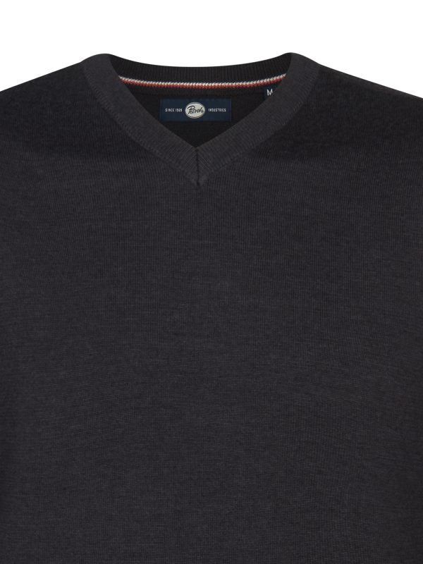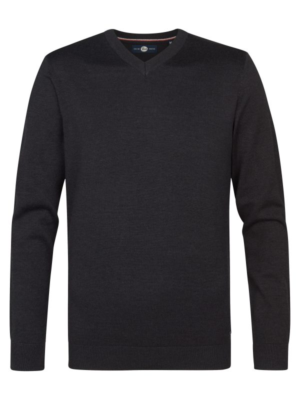 Petrol Fine-knit V-neck Sweater Whitefish – Black