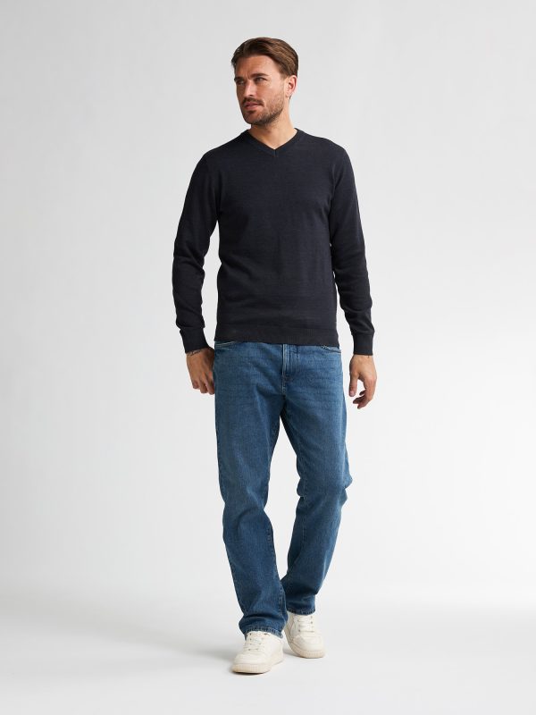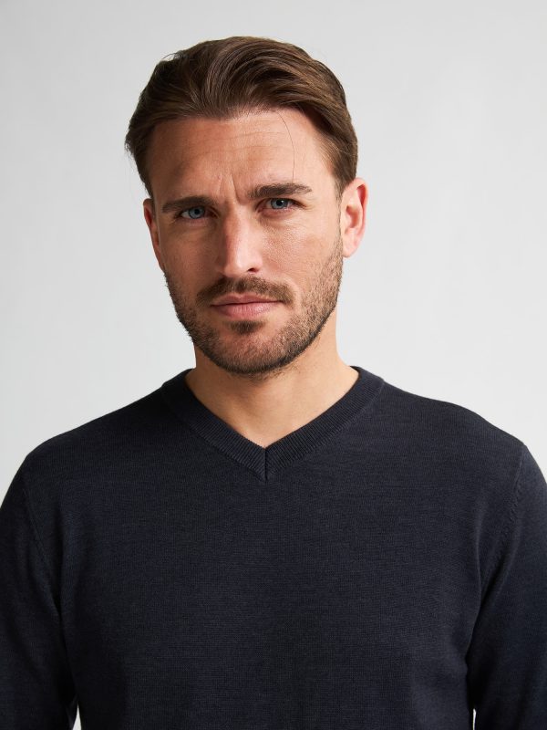 Petrol Fine-knit V-neck Sweater Whitefish – Blue