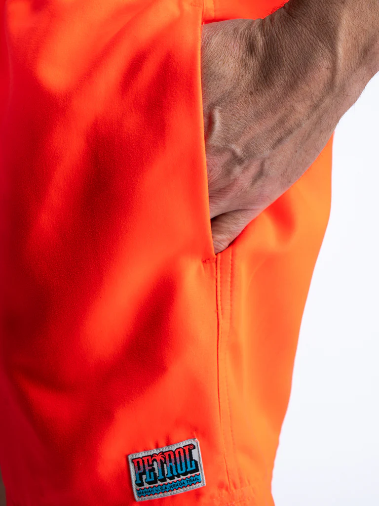 Sustainable swimming shorts in plain color. These swimming shorts have a stitched Petrol logo and drawstring closure. Available in different colors. If you’re in between sizes, choose the larger size.