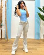 Satin Tie-Front Bell Sleeve Crop Top – Sky Blue