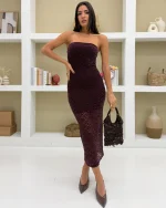 Strapless Lace Bodycon Midi Dress – Melanza