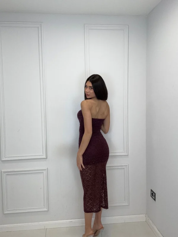 Strapless Lace Bodycon Midi Dress – Melanza