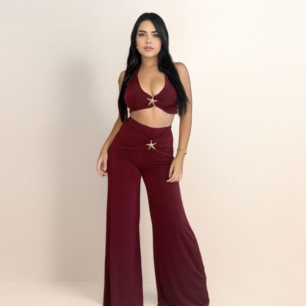 Two-Piece Star-Embellished Outfit – Bordeaux