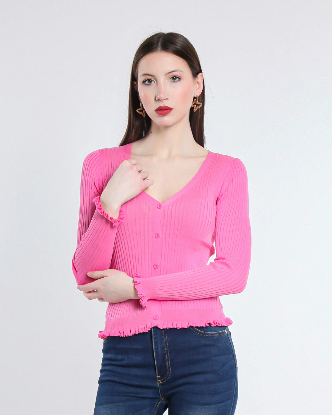 Satin Tie-Front Bell Sleeve Crop Top – Fuchsia