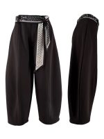 Wide Leg Pants with Polka Dot Satin Belt – Brown