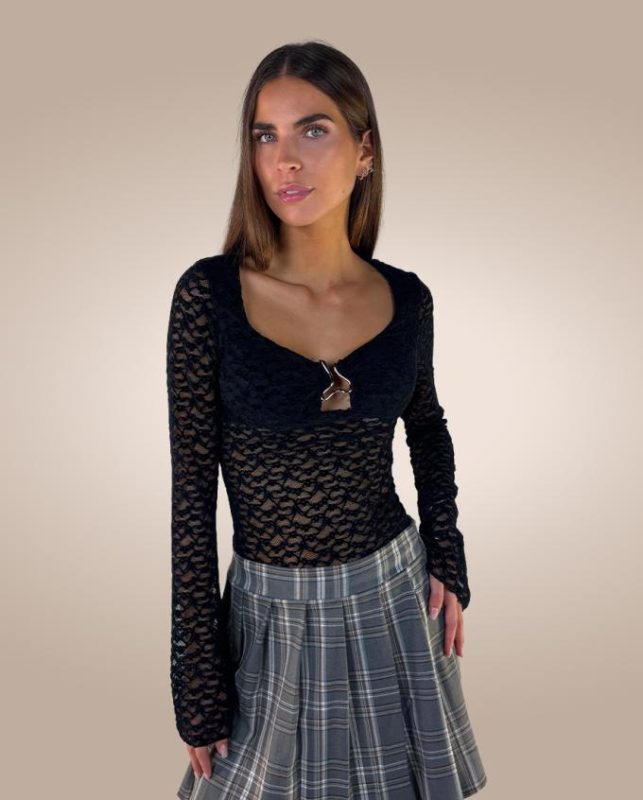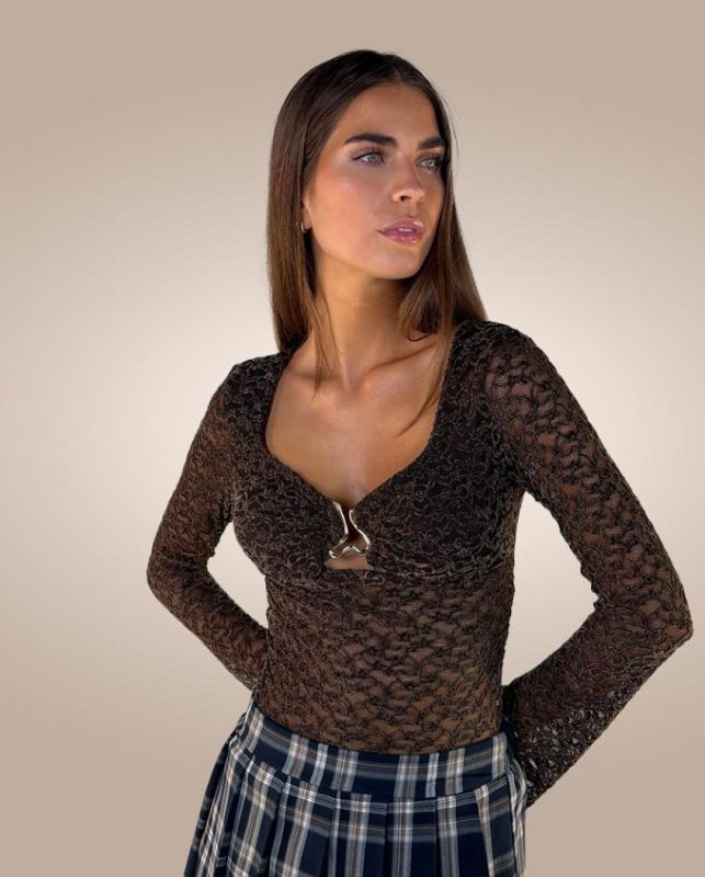 Lace Long Sleeve Top with Gold Detail – Bordeaux