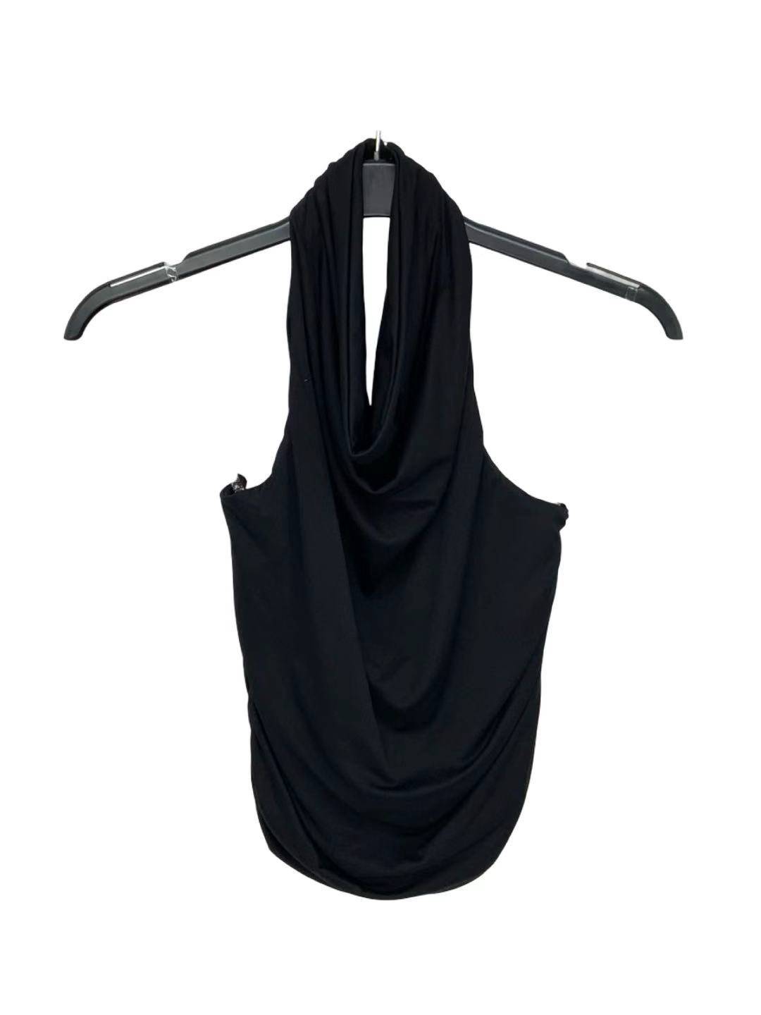 Halter neckline crop top with back heart accent.