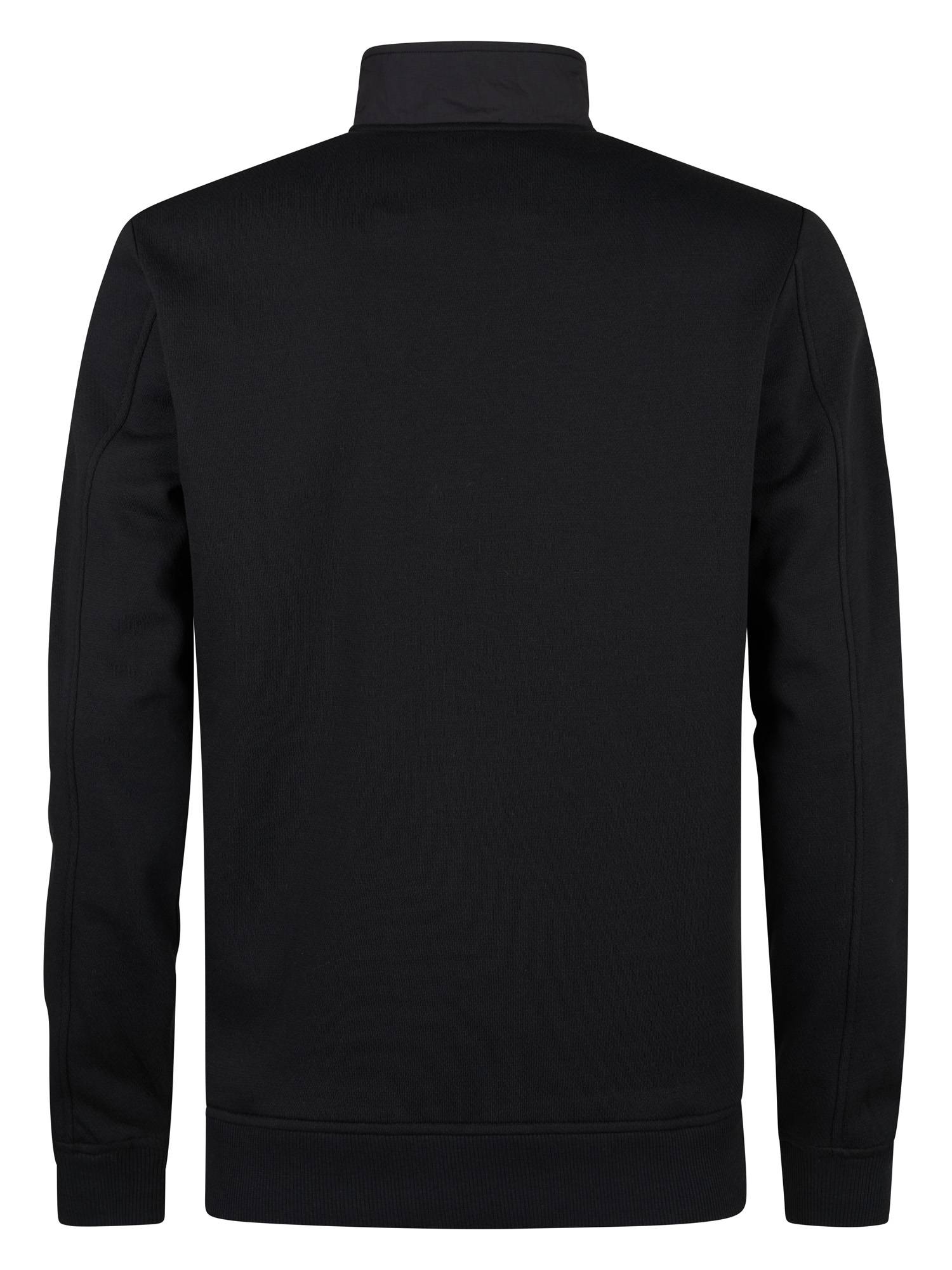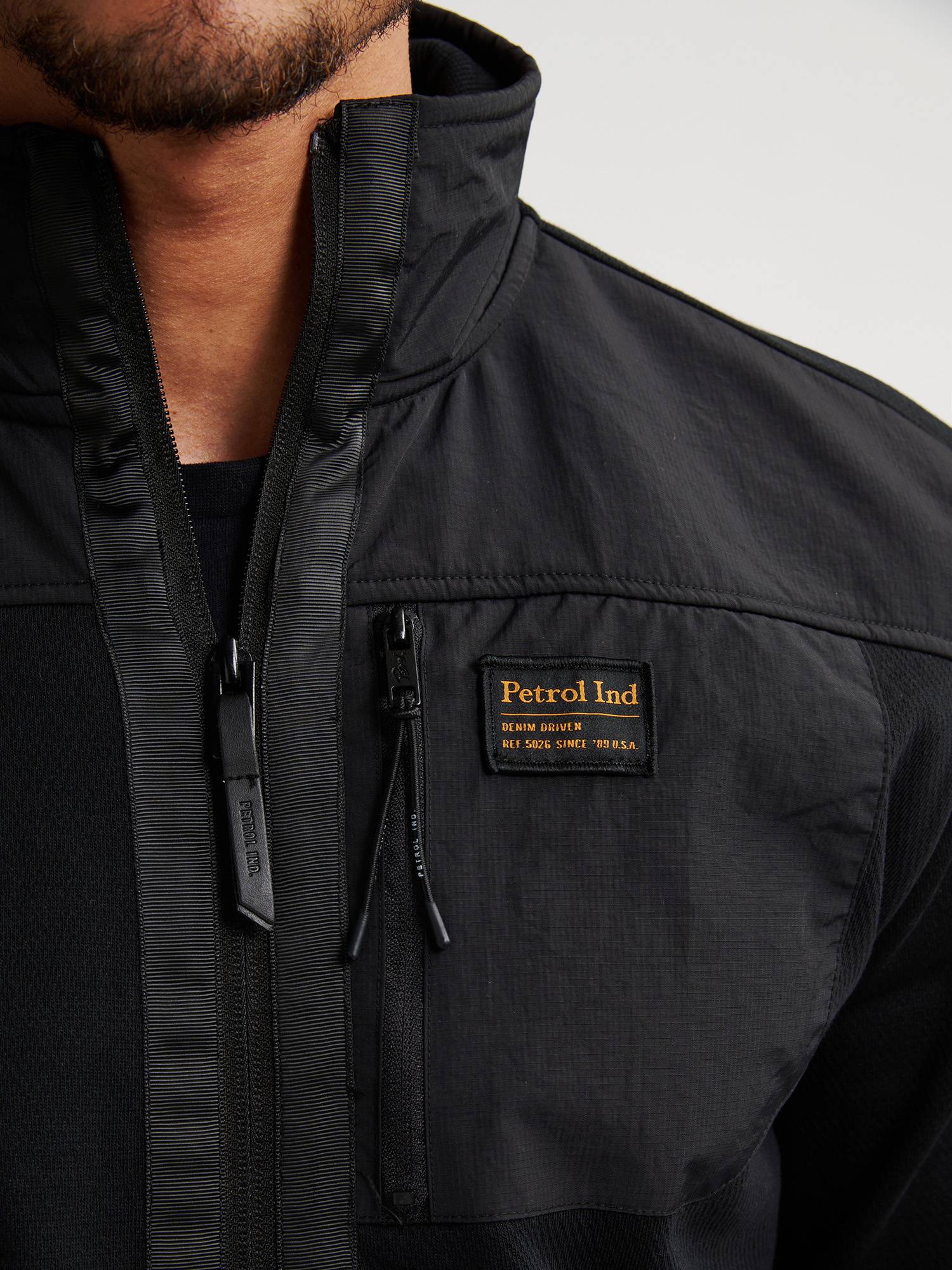 This men's sweater with a collar combines comfort and a rugged look. Details such as the zippered chest pocket and the mix of materials contribute to its tough appearance.