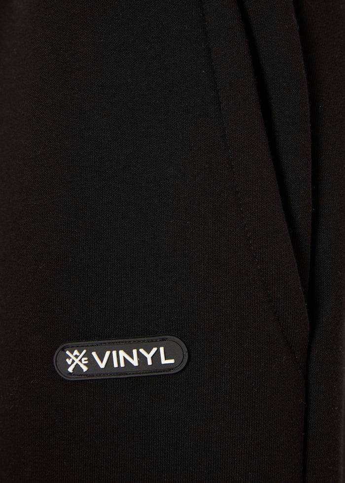 Vinyl sweatpants with logo detail and adjustable drawstring. Two side pockets and one on the back. Elastic ankles.